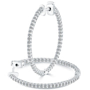2.00 Carat F-VS-SI Large inside out Diamond hoop earrings 14k White Gold