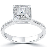 0.86 Carat F-SI1 Certified Princess Cut Diamond Engagement Ring 18k White Gold