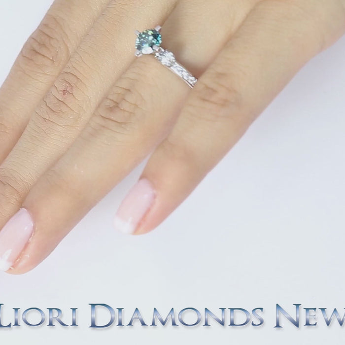 1.44 Carat Certified Fancy Blue Round Diamond Engagement Ring 18k White Gold