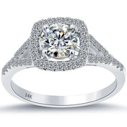 1.17 Carat E-VS2 Natural Round Diamond Engagement Ring 14k White Gold Pave Halo