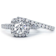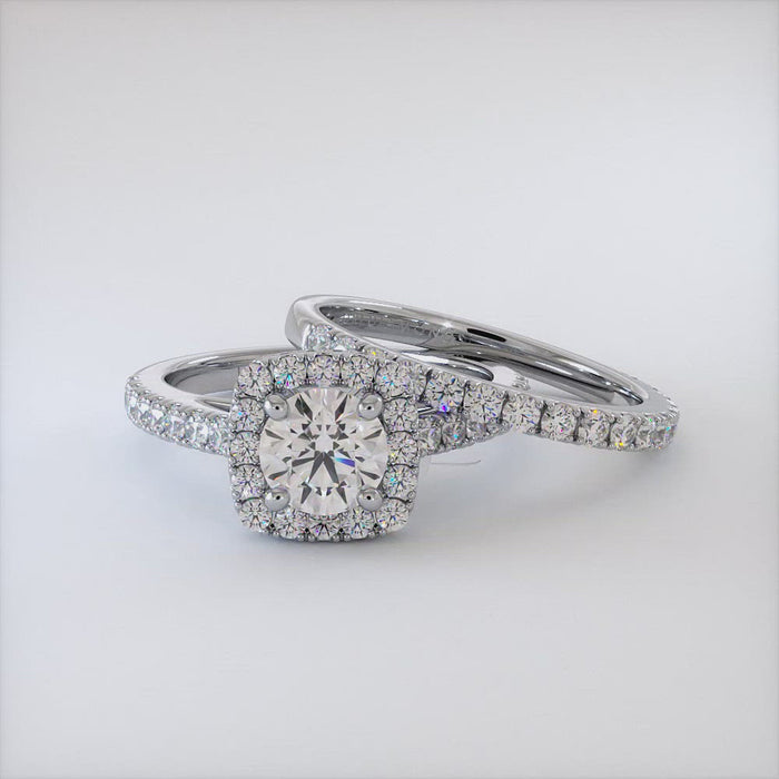 2.50 Carat E-SI1 Diamond Engagement Ring & Wedding Band Set 14k Gold Pave Halo