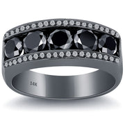 3.50 Carat Natural Black & White Diamond Mens Wedding Band Ring 14k Black Gold