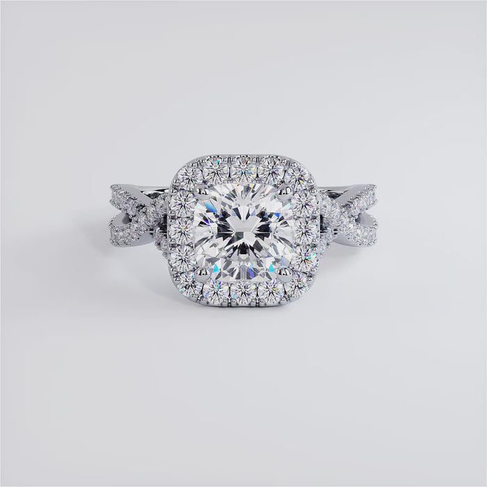 2 Carat Cushion Cut Infinity Twist Square Halo