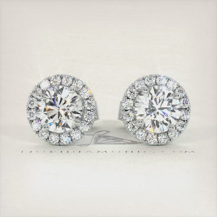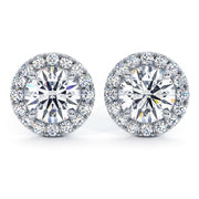 1.30 Carat G-SI Pave Halo Diamond Studs Earrings 18k White Gold