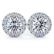 2.50 Carat G-SI Pave Halo Diamond Studs Earrings 18k White Gold