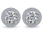 2.67 Carat H-SI2 Pave Halo Diamond Studs Earrings 18k White Gold
