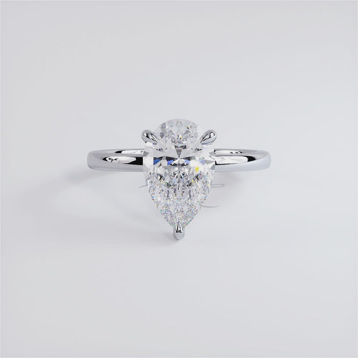 A classic petite wire basket diamond solitaire engagement ring set with 2 Carat Pear Shape Lab Grown Diamond.