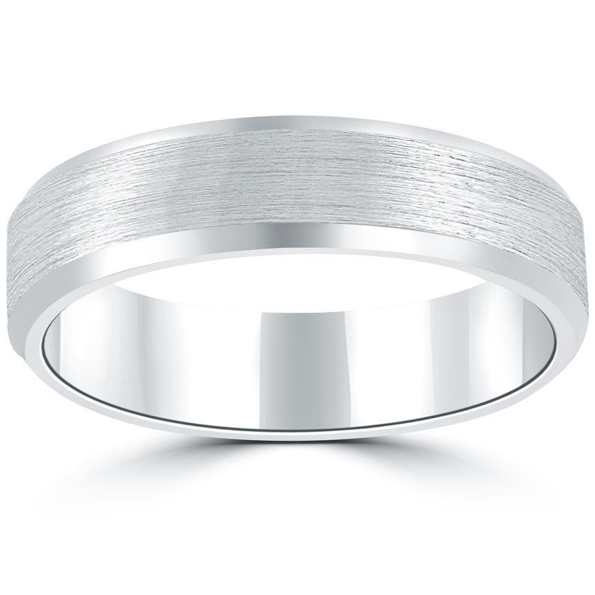 Beveled Edge Matte Finish Wedding Band Ring 14k White Gold Comfort Fit (5 mm)