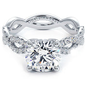 A infinity twist micropavé diamond engagement ring set with 1.50ct dew Round Cut VVS & Colorless (D-E-F) Moissanite.