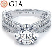 A micropavé three row diamond engagement ring set with 2.00 Carat Round Cut Lab Grown Diamond.