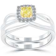 0.39 Carat Fancy Yellow Cushion Cut Diamond Engagement Ring & Wedding Band Set