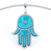 0.44 Carat Diamond Hamsa Hand of fatima Evil Eye Charm Pendant 18k White Gold