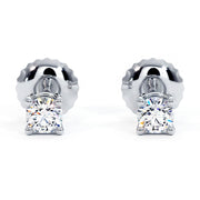 These classic diamond stud earrings allure with their simple yet elegant look. These round diamonds are set in a 14k white gold four-prong basket setting with the screw back closure.