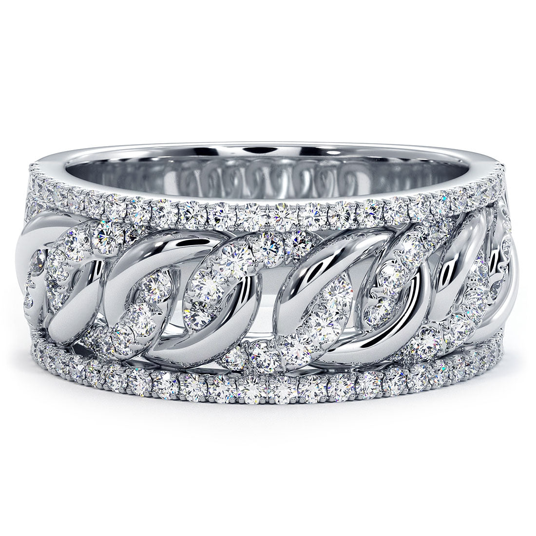 0.53 Carat F-VS Pave Cuban Link Diamond Ring 14k White Gold