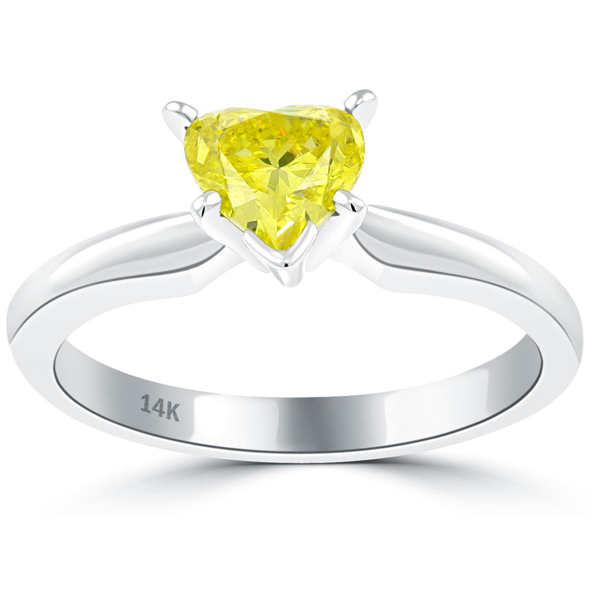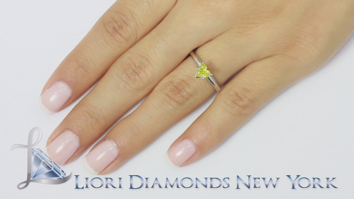 0.59 Carat Fancy Yellow Heart Shape Diamond Engagement Ring Solitaire 14k Gold