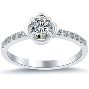 0.73 Carat E-SI1 Certified Natural Round Diamond Engagement Ring 18k White Gold