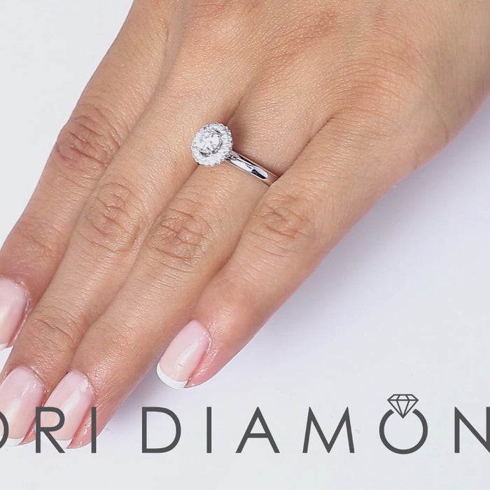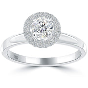 0.75 Carat D-SI2 Natural Round Diamond Engagement Ring 18k White Gold Pave Halo