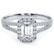 0.75ct Emerald Cut French Cut Halo Split Shank