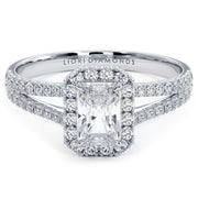 0.75ct Radiant Cut French Cut Halo Split Shank