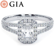 0.75ct Radiant Cut French Cut Halo Split Shank