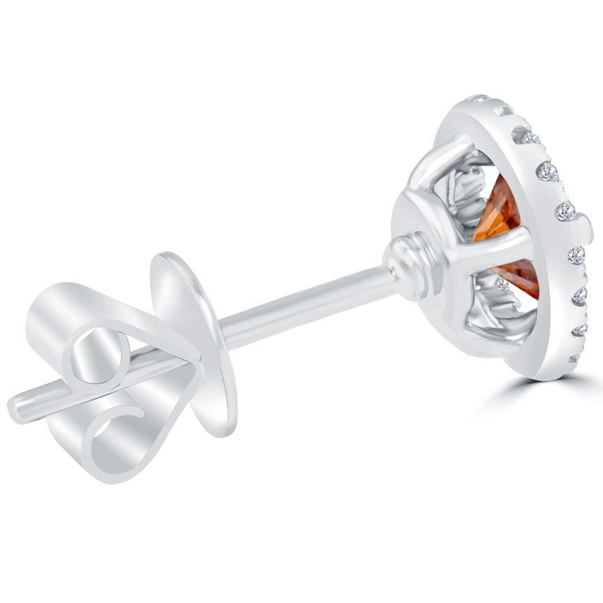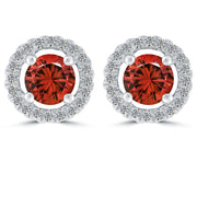 0.76 Carat Fancy Red Diamond Pave Halo Diamond Studs Earrings 18k White Gold