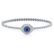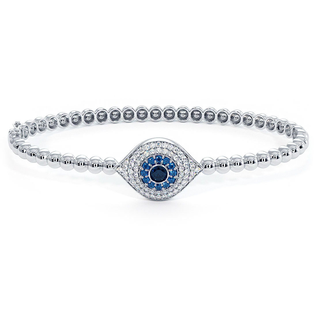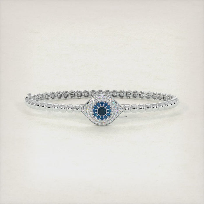 0.78 Carat Diamond Evil Eye Bracelet Beaded Bangle Cuff 14k White Gold