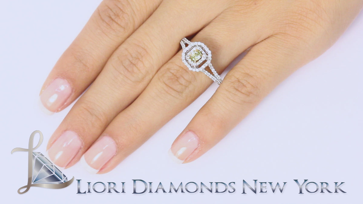 0.78 Carat Fancy Yellow Oval Cut Diamond Engagement Ring 14k Gold Pave Halo