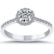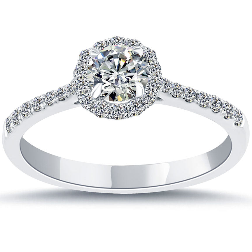 0.79 Carat E-SI1 Natural Round Diamond Engagement Ring 14k White Gold Pave Halo