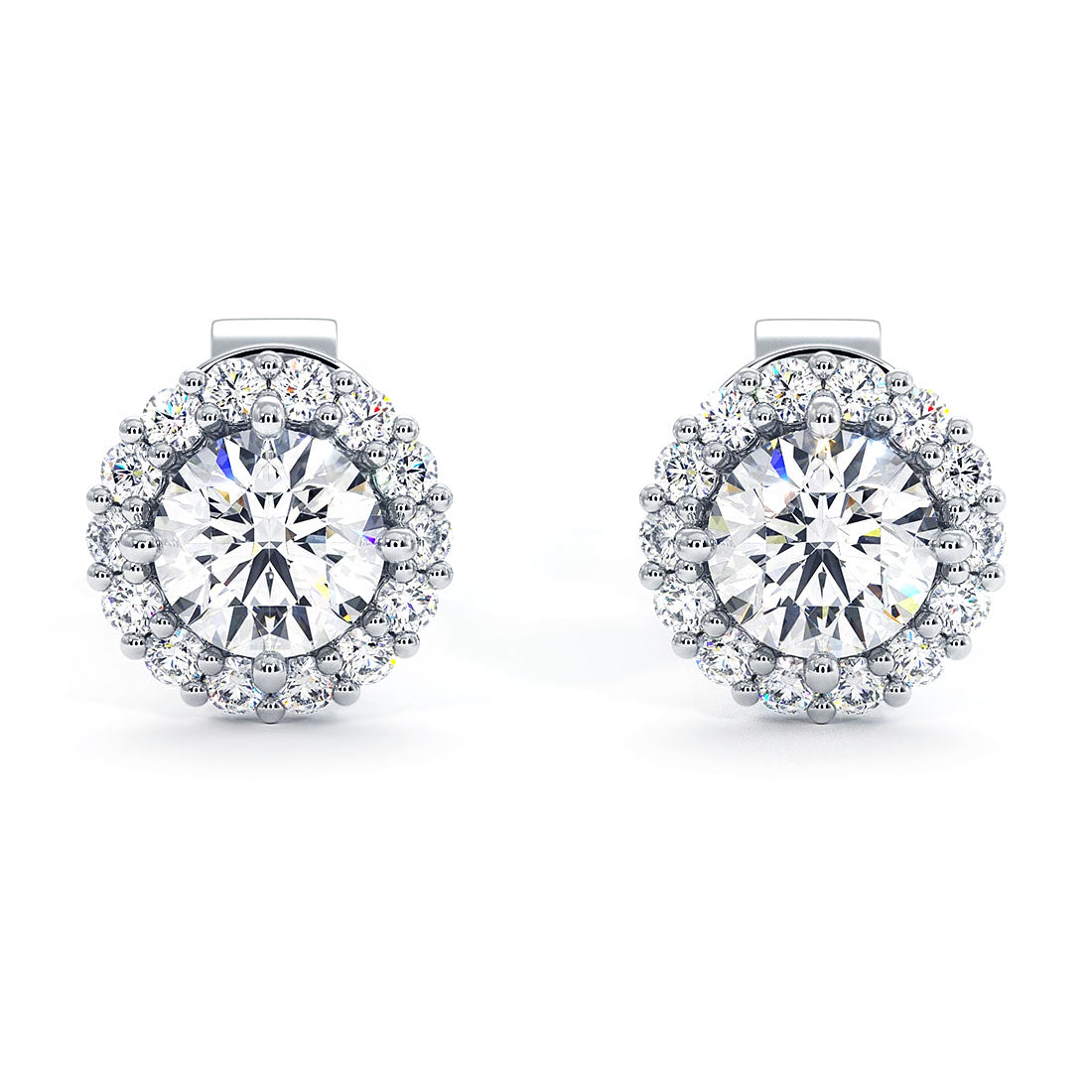 0.80 Carat F-VS Pave Halo Diamond Studs Earrings 18k White Gold