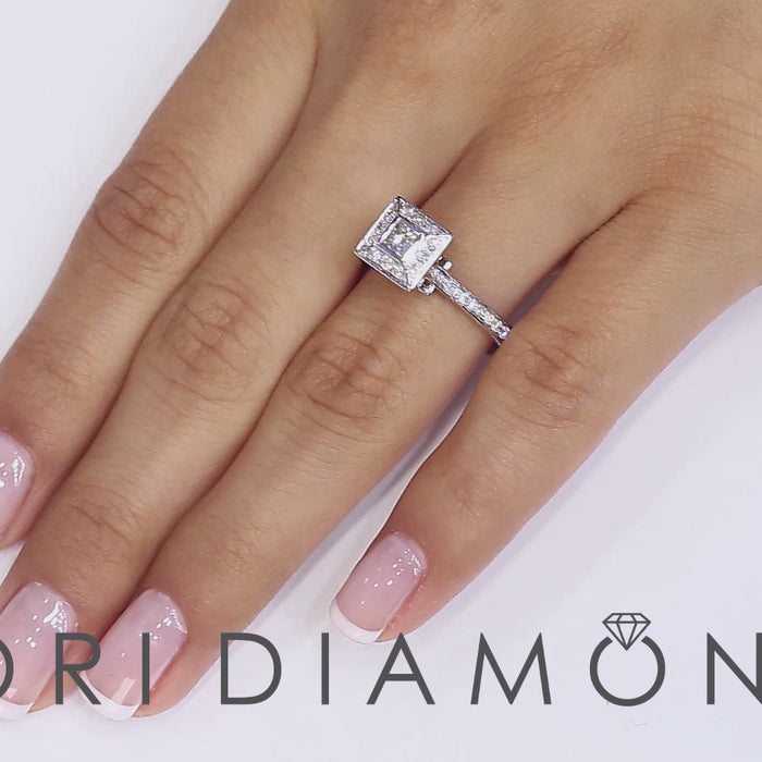 0.83 Carat G-VS2 Certified Princess Cut Diamond Engagement Ring 18k White Gold