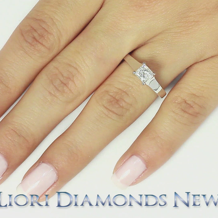0.85 Carat F-SI2 Princess Cut Diamond Solitaire Engagement Ring 14k White Gold