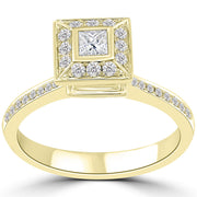 0.85 Carat G-VS2 Certified Princess Cut Diamond Engagement Ring 18k Yellow Gold