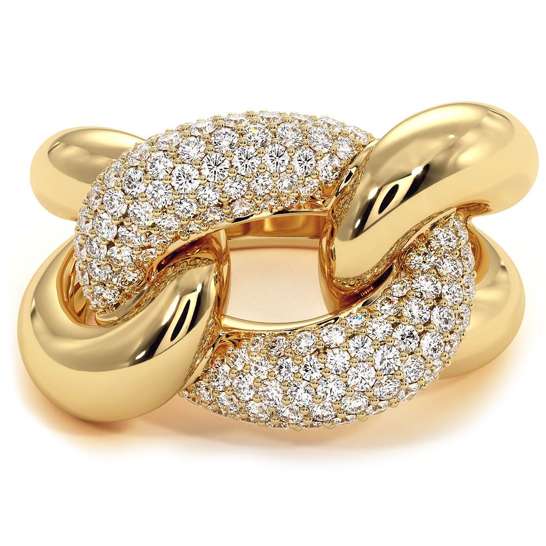 0.97 Carat F-VS Pave Cuban Link Diamond  Ring 14k Yellow Gold