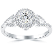 1.00 Carat D-SI1 Natural Round Diamond Engagement Ring 18k White Gold Pave Halo
