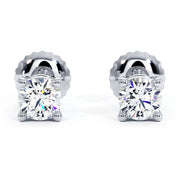 These classic diamond stud earrings allure with their simple yet elegant look. These round diamonds are set in a 14k white gold four-prong basket setting with the screw back closure.