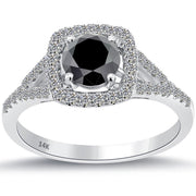 1.03 Carat Certified Natural Black Diamond Engagement Ring 14k Gold Pave Halo