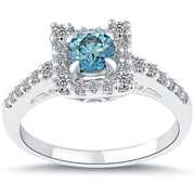 1.03 Carat Fancy Blue Diamond Engagement Ring 14k White Gold Pave Halo