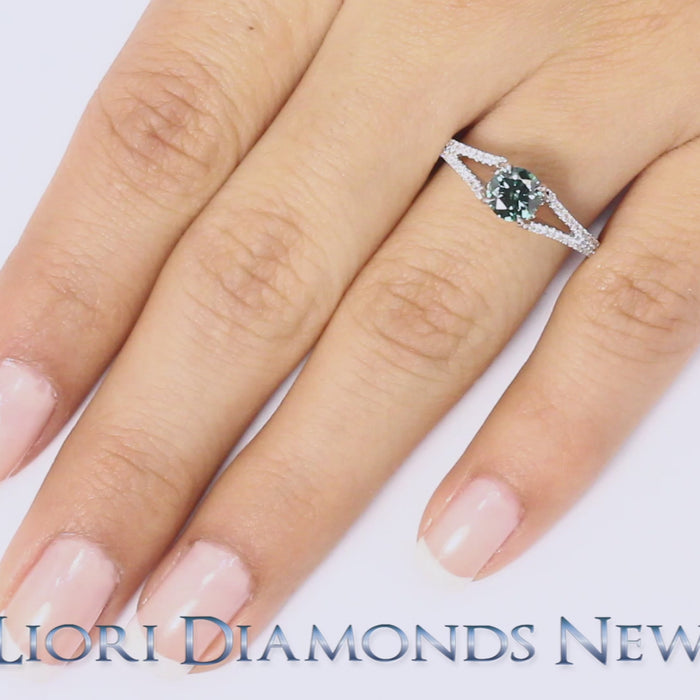 1.05 Carat Certified Fancy Blue Round Diamond Engagement Ring 18k White Gold