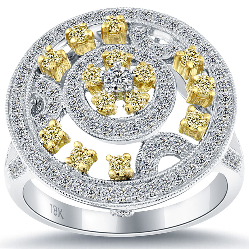1.05 Carat Fancy Yellow & White Diamond Cocktail Fashion Ring 18k White Gold