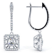 1.06 Carat Round Diamond Leverback Hanging Drop Earrings 18k White Gold