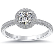 1.07 Carat F-SI1 Natural Round Diamond Engagement Ring 14k White Gold Pave Halo