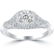1.11 Carat H-SI1 Natural Round Diamond Engagement Ring 14k Gold Vintage Style