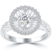 1.12 Carat F-SI1 Natural Round Diamond Engagement Ring 18k White Gold Pave Halo