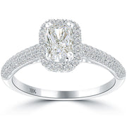 1.14 Carat H-VS1 Radiant Cut Diamond Engagement Ring 18k Pave Halo Vintage Style