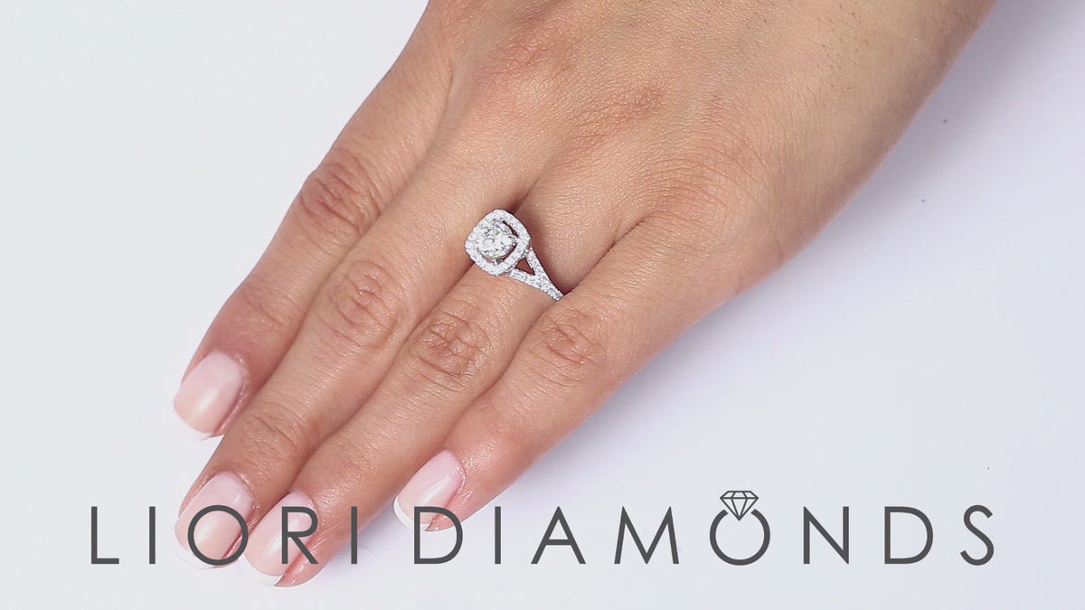 Glowingly centered sits a 0.80 H-SI1 Round Brilliant Diamond, perfectly crafted in 14k white gold. The micro pave setting consists of 0.36ctw F-VS Round Diamonds. The diamonds illuminates the band as well as the center stone allowing it to glisten in any direction pointed. The semi split band slightly elevates the center diamond at a comfortable level. Uniquely crafted this engagement ring is ready for wear!