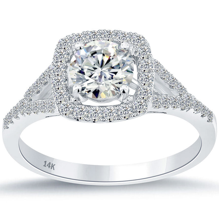 1.16 Carat H-SI1 Natural Round Diamond Engagement Ring 14k White Gold Pave Halo