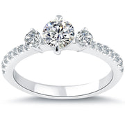 1.17 Carat E-VS1 Three Stone Natural Diamond Engagement Ring 14k White Gold