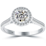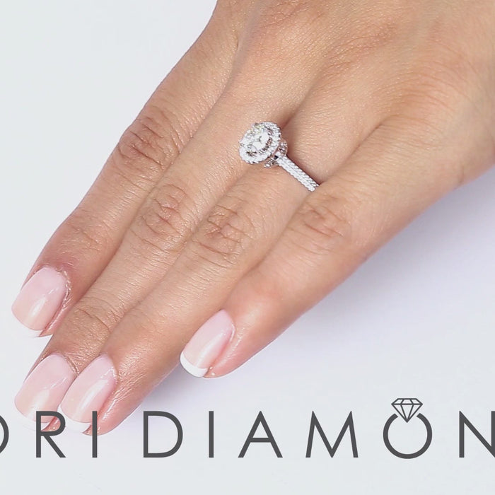 Here is a glistening Round Brilliant Diamond Engagement ring. A captivating 0.77ctw Round Diamond holds the center of the ring. Graded VS2-H, the round diamond is nearly colorless and perfect to the naked eye. The micro pave setting consisting of 0.40ctw round diamonds beautifully accentuates the center diamond. The base of the four prongs securing is attractively hand-crafted giving it a unique look. This enchanting engagement ring is crafted in 18k white gold and AGI certified.