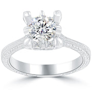 1.25 Carat D-SI3 Vintage Style Round Diamond Engagement Ring 18k White Gold