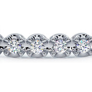 This single row buttercup prong set round brilliant cut diamond bangle bracelet is set with F color & VS1 clarity diamonds, every diamond is set beautifully and carefully in a 4 prong setting, the double securing clasp allows for worry and stress free wear. This diamond tennis bracelet is made in 14k White Gold.